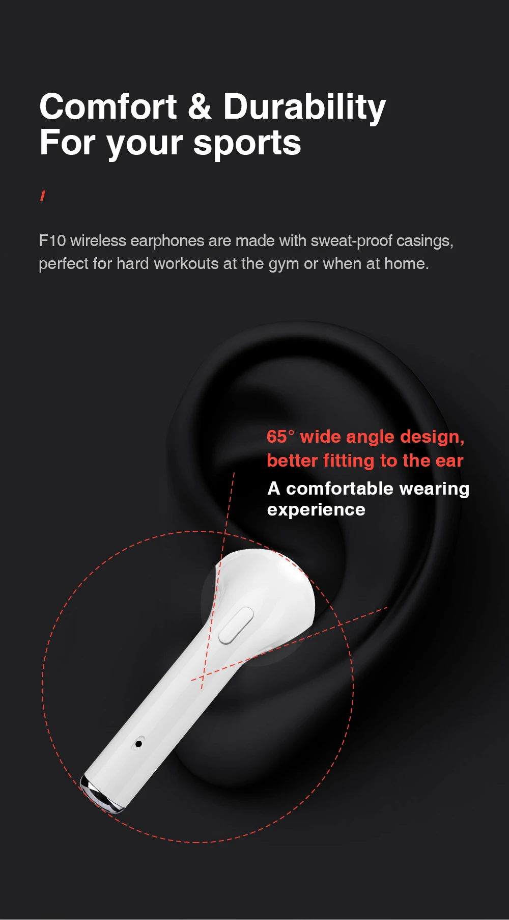 65° wide angle design, better fitting to the ear
