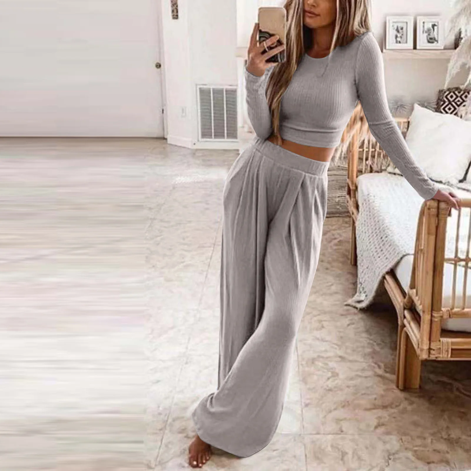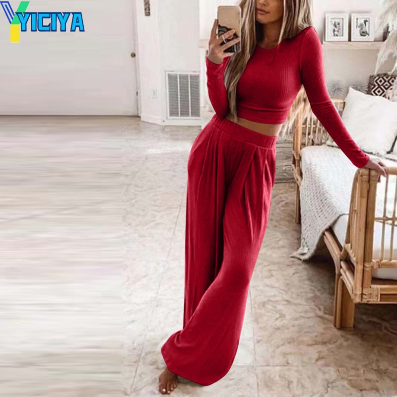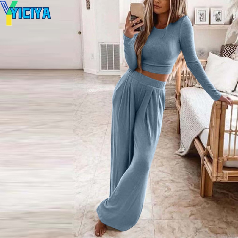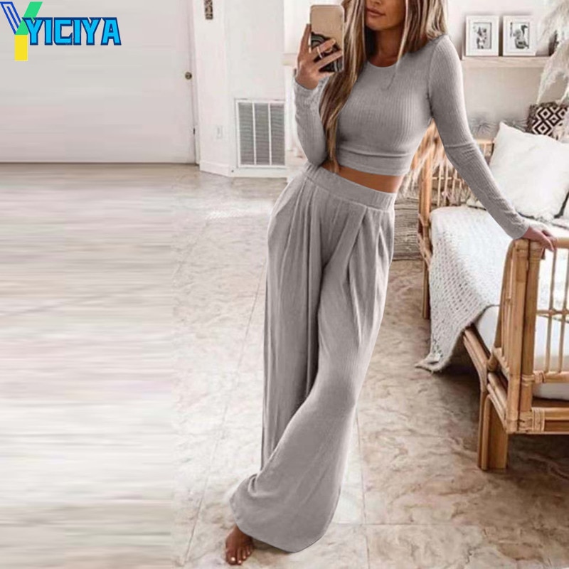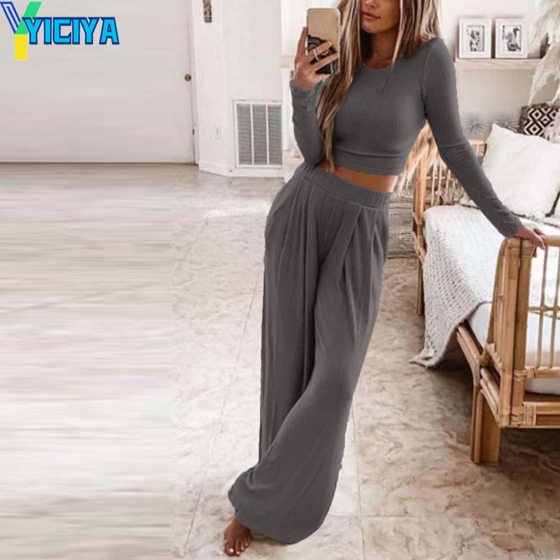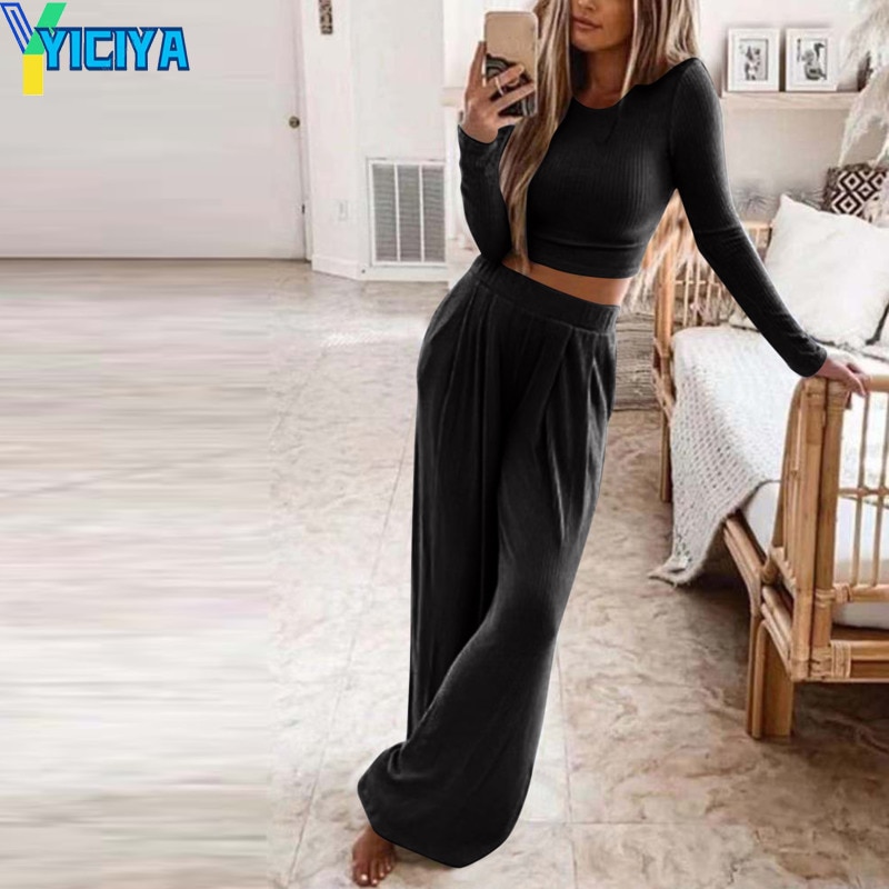 YICIYA Women’s Tracksuit Solid Basic Women T-shirt And Wide Leg Pants